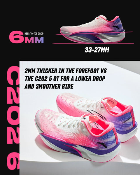 The C202 6 stands out for its versatility—balancing performance, comfort and stability. Additionally, this generation introduces three other models: one designed for high propulsion to enhance speed during races, another that emphasizes ultra-lightweight materials for a barely-there feel, and a high-performance option that combines our most advanced technologies for athletes who want the best. Together, these shoes are poised to meet the diverse requirements of runners at various levels and running styles.