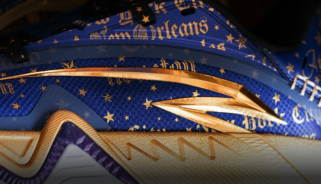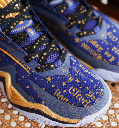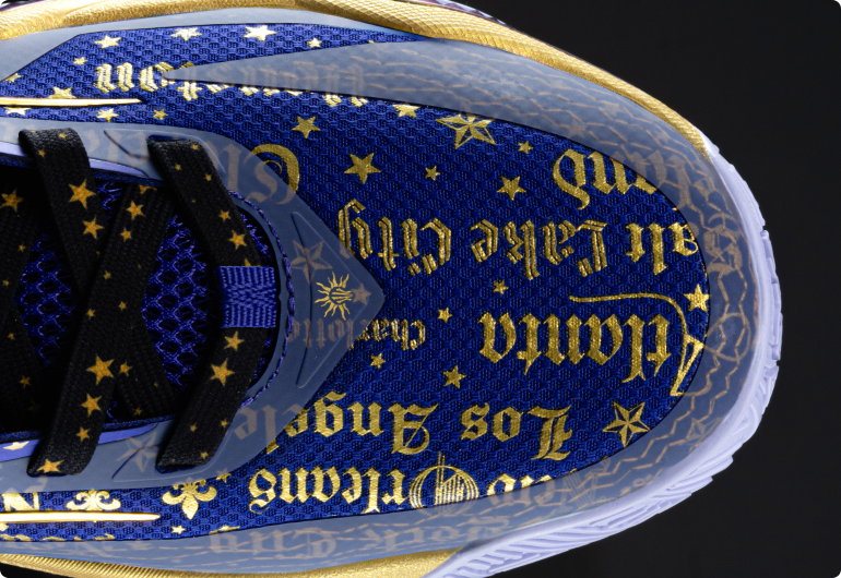Gold script and starry graphics stamp the journey’s chapters across the upper, adding standout depth and texture. Zoned textiles and structural reinforcements lock you in on lateral moves—balancing breathability and support for fast takeoffs and repeated c