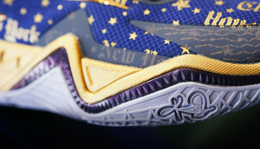 A gold, raised Kyrie Shield stands out on the heel with a premium, dimensional finish. Like a personal badge, it represents protection and belief—while elevating the shoe’s signature, collectible feel.