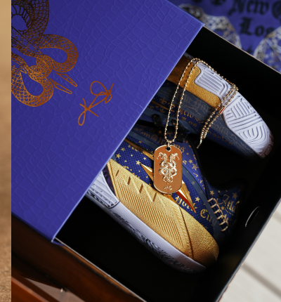 Each pair comes with a KAI 3 metal tag pendant, finished with embossed detailing and raised lines for refined, dimensional depth. Attached on a beaded chain, it’s easy to wear, display, or keep as a story marker for the colorway. More than an accessory, it all begins, every time you lack up.